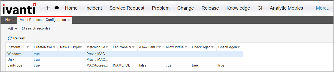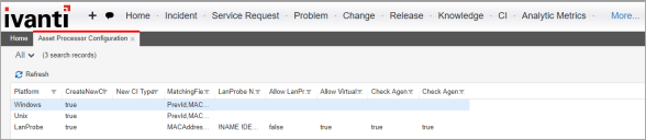 On the Asset Processor Configuration page, the Create a new CI checkbox is disabled, by default from the 2019.1 release. This change was introduced in the “Asset Processor Configuration” workspace due to the consolidation of AMDB and CMDB resulting in a unified IxM DB, introduced in the 2019.1 release.
