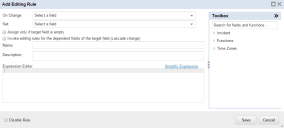 For editing rules, use the On Change and Set drop-down lists to create a sequence. Add expressions in the field provided.