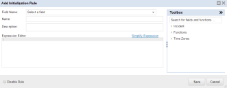 The application executes the rules in the order listed. Therefore, the results of rules that are lower on the list can change depending on the returned values of the rules that are higher on the list. You can reorder the initialization rules. See Modifying Business Rules.