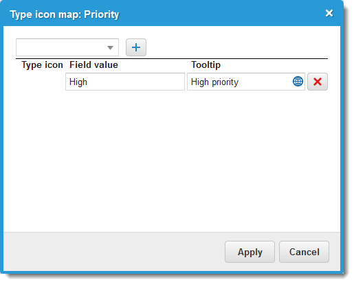 Fields to select | Add fields to constrain the matching records to use for the list source. Choose fields from the Select field drop-down menu. Click the add icon Click the delete icon |