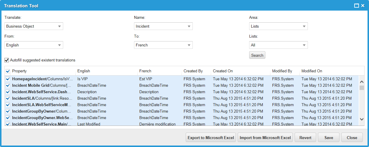 Service Manager provides a translation tool that lets you customize the text strings used in the application for each supported locale. You can use the translation tool to do the following: