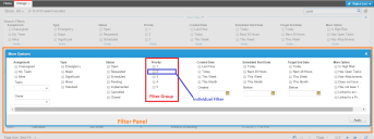 Each filter panel is made up of one or more filter groups. The figure below shows the filter panel for the Change business object. If you click more... at the bottom of a filter group, the application displays the More Options dialog box.