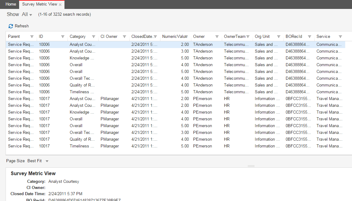 Survey Metric View Record