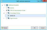 1.Click Select Articles to select the knowledge articles to import. The application displays the NXT articles selection dialog box.
