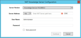 User Name | The user name of a person who can access the NXT server that you are taking the knowledge articles from. |