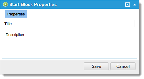 The Start workflow block starts the workflow when the trigger fires. The trigger event can be a condition, a scheduled action, or a call from another workflow process. The Start block is required. The first action in the workflow is to create a record within the business object.
