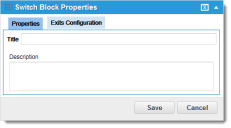The Switch workflow block allows a Boolean decision to be made between fields, literal, system function, and global values. You can define multiple exit ports depending on the decision, routing the workflow to different blocks.