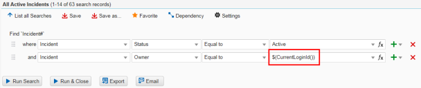 Searches and dashboards can use full expression syntax, including some of the built-in functions included with Service Manager. (See Notes on "Enabled For" for information about which built-in functions can be used.) An example is: