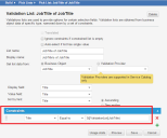 •In the third field, enter $([ValidationList] FieldName>), where FieldName is the name of a field in the business object.