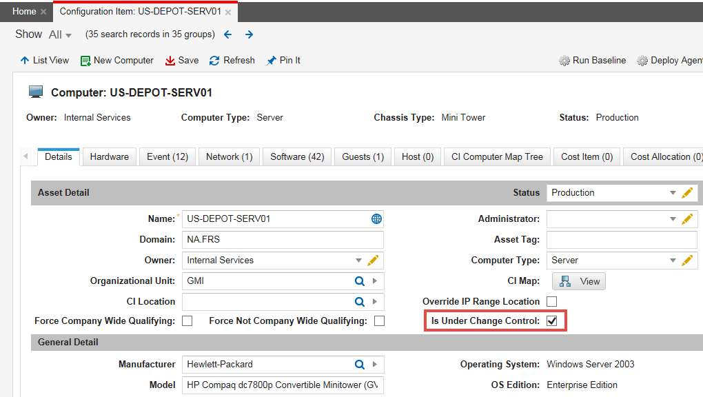 3.From a configuration item record, select the Is Under Change Control option on the Details tab.