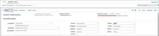 When an incident is resolved, the application notifies the customer, who has the option of changing the status of the incident if the resolution is not satisfactory. After a certain number of days in the resolved status, the application automatically sets the incident to closed.