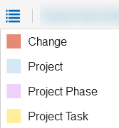 Project Change | Allows you to manage change control. Enter change requests to the project from this tab. Setting the urgency and impact sets the priority of the change to a value between 1 and 5. The system automatically assigns changes to the Change Management team. You can set dates for approval and review. | |