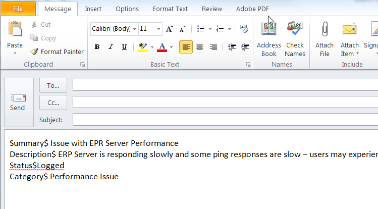 •The problem fields that are filled in from the email are denoted to the left of the $ sign.