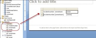 6.Enter your query. For example, a simple query to get all the incidents by owner team, showing the incident number and owner is select incidentnumber,ownerteam,owner from incident where owner= (@owner). In this example, @owner is taken by Microsoft SSRS as a parameter. When running the query, the system prompts you for the value. You can provide any value to test the query. The system automatically creates the owner parameter and automatically maps it to the dataset.