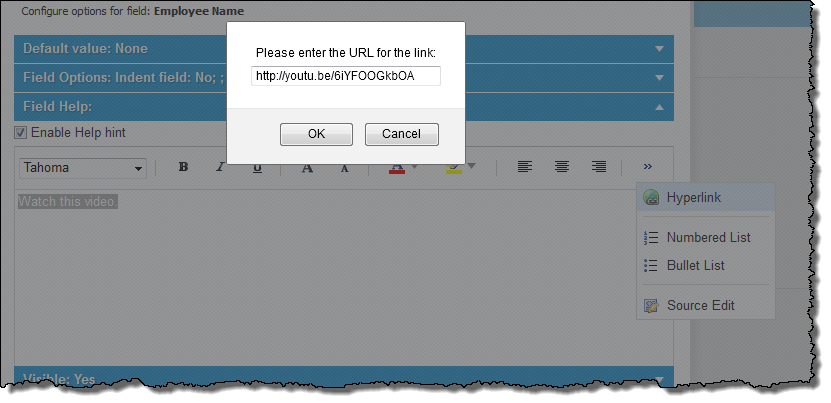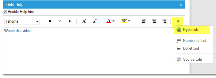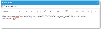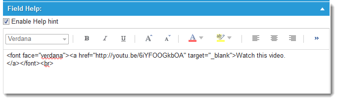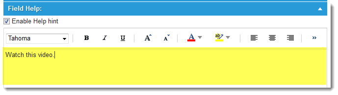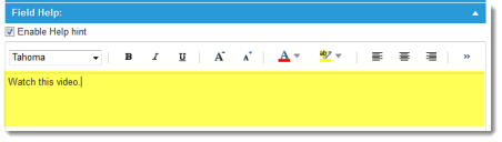 6.Expand the Field Help section and click Enable Help hint. A text area is displayed.