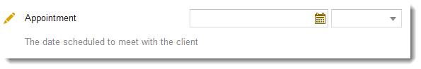 Combines the date and time fields into one line. Allows users to enter a date from a calendar and a time from a drop-down list. |