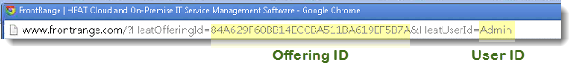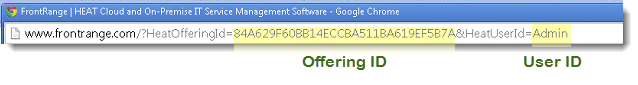 | Put Offering Id in URL as | Shows the offering ID and the user ID appear in the URL box. |