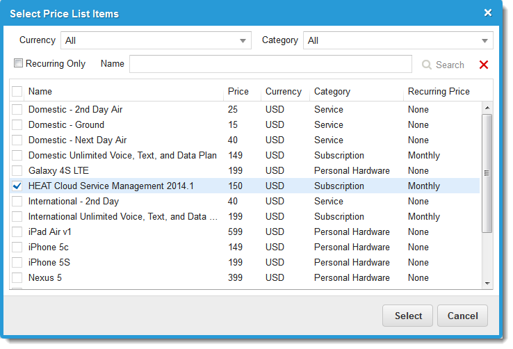 For example, if you create a Service Catalog request, the prices automatically reflect the location of the user, based on the defined location in the Employee record.