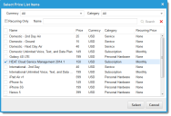 7.Click Add from Price List under Delivery Item. The list of prices appear. This list is populated from the Working with Price Lists workspace.