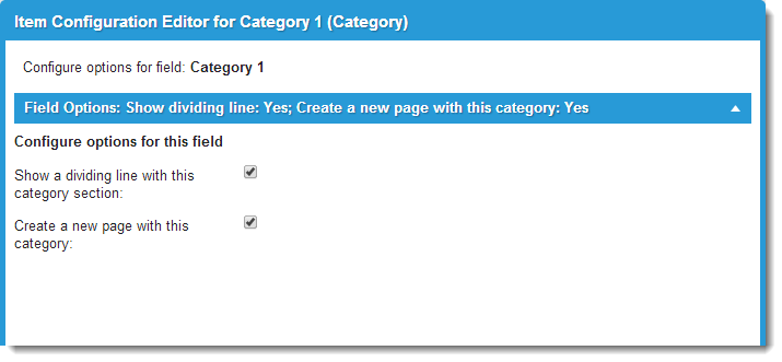 Adds a dividing line. Displays the category on a separate form page (that is, create a multi-page form). |