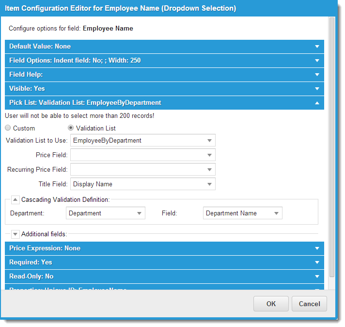 Validation List to Use | Choose Employees or EmployeeByDepartment from the drop-down list. |