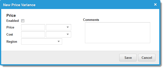 Enabled | Enables the price variance feature. (You must also select Enabled in the Price Item window. |