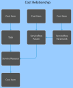 Each service request has a task and a ServiceReqParam attached, each having their own cost items. The ServiceReqParam has attached to it ServiceReqParamLink, which has its own cost item. And the service request itself has a cost item. The following diagram illustrates the relationship given in the above example.