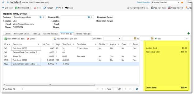 Task Cost Item | ServiceReq -> Task -> Frs_ITFM_Transaction |