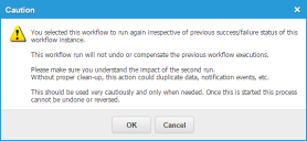 Make sure that you understand the impact of rerunning a workflow. When you rerun a workflow, you are rerunning it again irrespective of the previous success or failure status of the workflow instance. Rerunning the workflow does not undo the previous workflow execution.