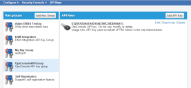 1.From the Configuration Console, click Configure > Security Controls > API Keys to open the API Keys workspace. The list of API keys appears.