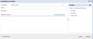| Disable Rule | Specifies if the before-save rule is disabled. |