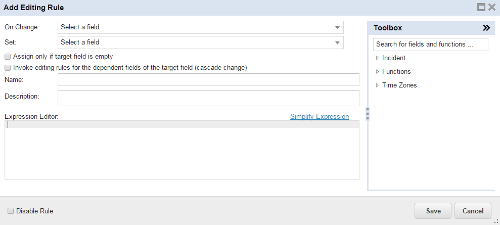 | Disable Rule | Specifies if the editing rule is disabled. |