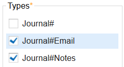 The type of related object. Types vary according to the selected related item. You can select multiple types, but must configure each type separately. Journal# Journal#Email Journal#Notes Journal#RemoteControlSession Journal#VoiceActivity |