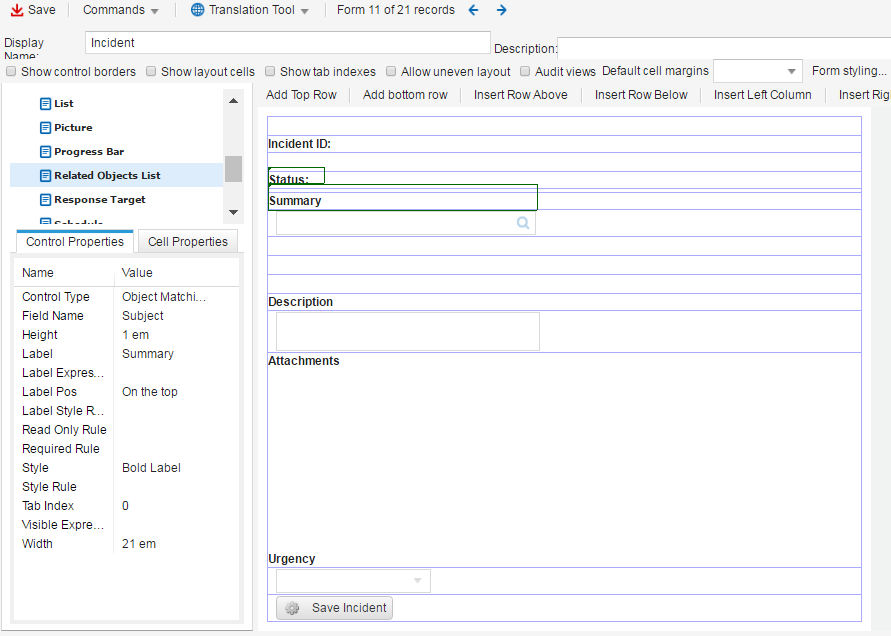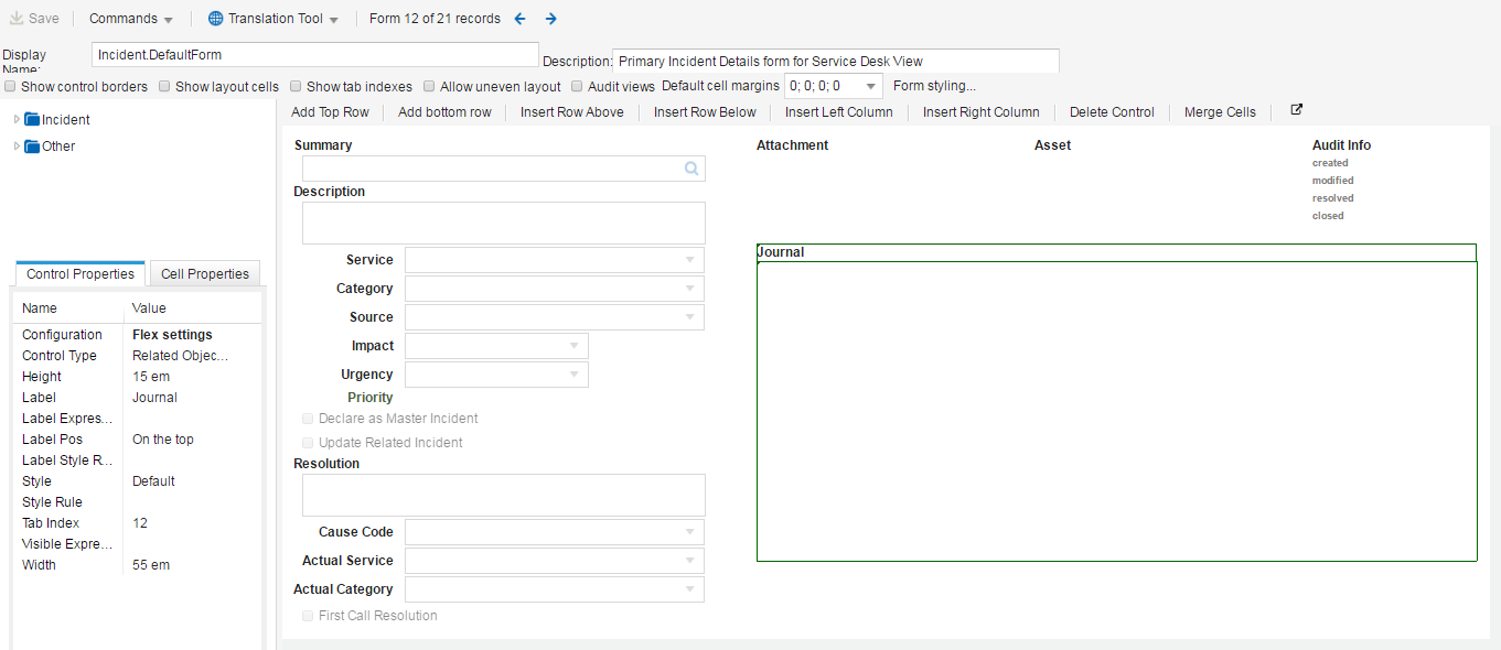 4.Open the Incident.DefaultForm form, which is where the Journal child business object is embedded.