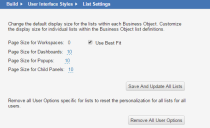 3.Click Save And Update All Lists to save your settings and update all lists in all business objects. You can then apply custom settings to individual lists. Users will see the updated settings when they log in again.