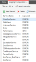 2.Open the Logging Configuration workspace. The application displays the Logging Configuration workspace, listing the default log settings.