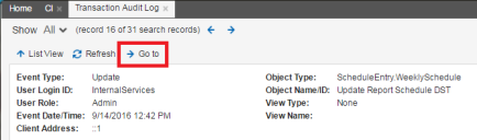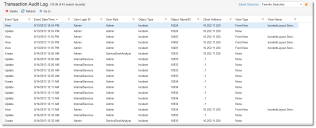The Transaction Audit log lists create, update, and delete events that are enabled per business object class. It also allows views of business object details to be logged. View logging is enabled per form or form-view.