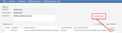 3.At the end of the line for the most recent workflow version, click the publish