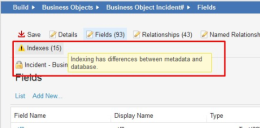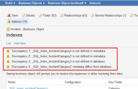 If you open a business object and see a caution sign next to the Indexes tab, that means that the indexes need to be synchronized.