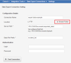 1.Create an export data connection from the Data Integration Wizard by following the process in Exporting Data. For this example, create a connection that creates a file by selecting Shared Folder. (File share is only available for on-premise deployments.)