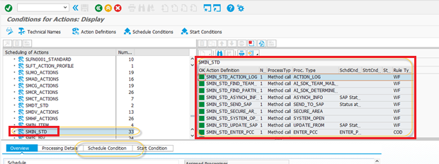 1.From the Conditions for Actions screen, under the Scheduling of Actions header, select SMIN_STD and on the right side, select SMIN_STD_SEND_THIRD.