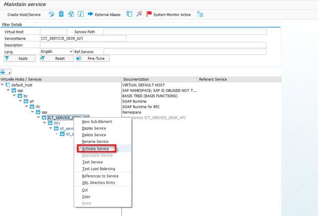 •Navigate to the web service ICT_SERVICE_DESK_API.