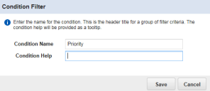 3. In the Condition Name field, enter the name for the filter group. This is the header that the application displays in the Service Desk Console.