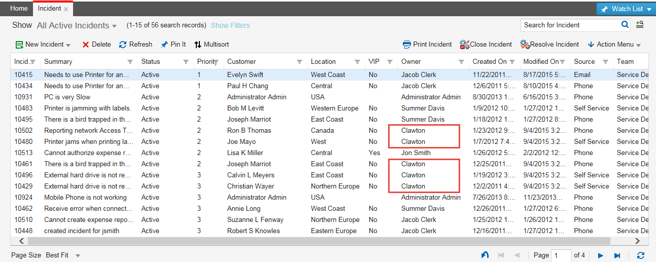 Incident List Before Search and Replace
