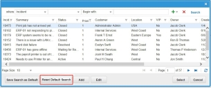 If the values for the Field and the Criteria fields do not have the same data type (for example, if the value for Field is a Boolean and the value for Criteria is text), the application returns an error. If you created a saved search prior to Service Manager Release 2014.3, and that saved search included values with different data types, you get an error if you run the saved search in Service Manager Release 2014.3. If this happens, contact your administrator. The administrator must open the saved search and click Reset Default Search to reset the search. This button is only available to administrators.