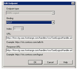 The URL to which users are directed when logging out of the authentication provider. This is defined on the ADFS computer as the SAML endpoint. Normally, this is https://tenant/adfs/ls.