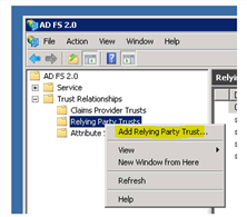 1.Select Trust Relationships, right-click Relying Party Trusts, then select Add Relying Party Trust....