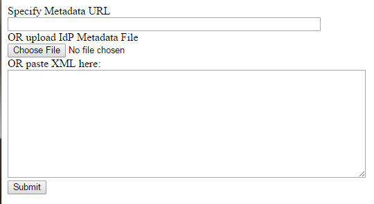 2.Enter information into the form. You can enter a URL, a file name, or XML. An example of the XML to supply is at https://wiki.shibboleth.net/confluence/display/SHIB2/MetadataExample.
