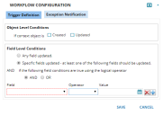 | OR | Choose the trigger the workflow based on any field (OR). |