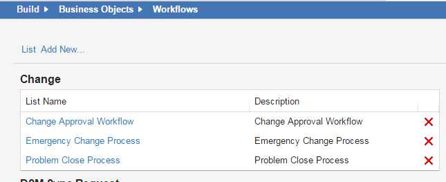 1.From the Configuration Console, click Build > Workflow > Workflows to open the Workflows workspace. The list of available workflows appears.